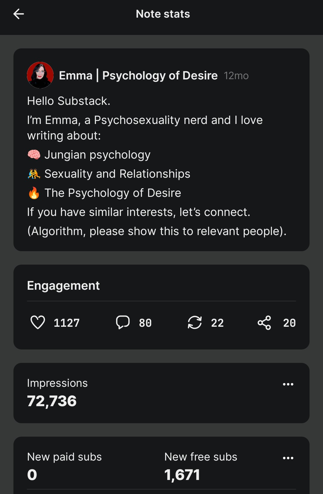 One year ago I was amazed to see that Psychology of Desire was available on this platform, jumped on my computer and wrote the below Note.